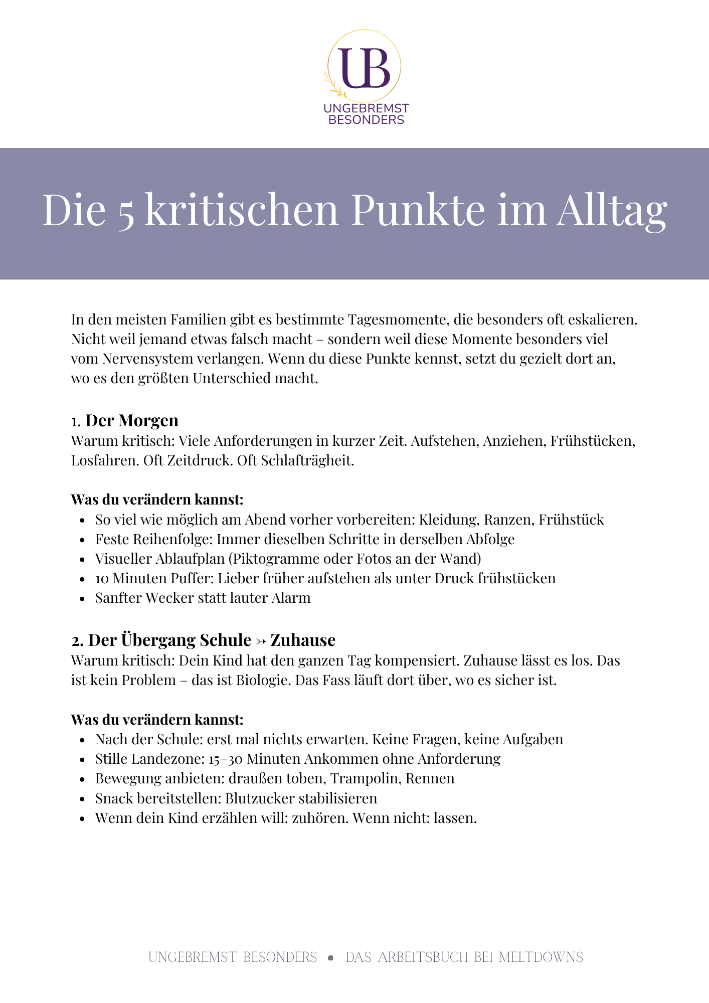 Die 5 kritischen Punkte im Alltag Morgen, Übergang Schule–Zuhause, Hausaufgaben, Nachmittag, Abend – warum diese Momente besonders oft eskalieren und was du dort konkret verändern kannst.