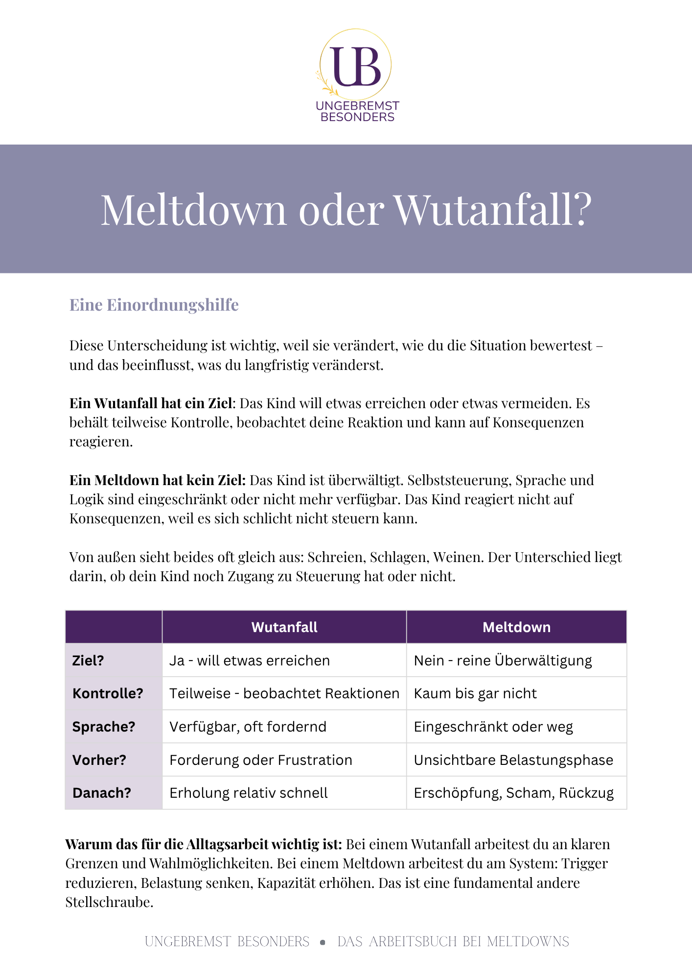 Du weißt, wie sich ein Meltdown anfühlt. Du hast gelernt, irgendwie durchzukommen. Aber es passiert immer wieder – an denselben Stellen, zu denselben Zeiten, aus scheinbar denselben Gründen.