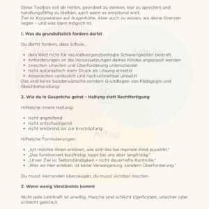 Dieses Paket hilft dir, dein Schulgespräch strukturiert vorzubereiten – ohne Drama, ohne Rechtfertigung, ohne Angriff.